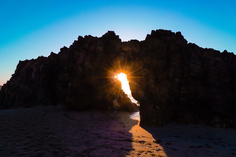 O caminho pela beira-mar é o mais curto: dá meia hora de caminhada a partir do canto direito da vila. Este caminho, porém, só é possível durante a maré baixa. Se você sair até 90 minutos antes do horário do nível mínimo da maré, vai conseguir ir e voltar pela praia.