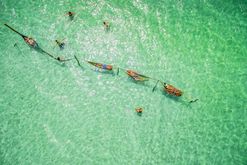 - Lago Grande em Tabajuba, com parada nas barracas com redes montadas dentro d’água