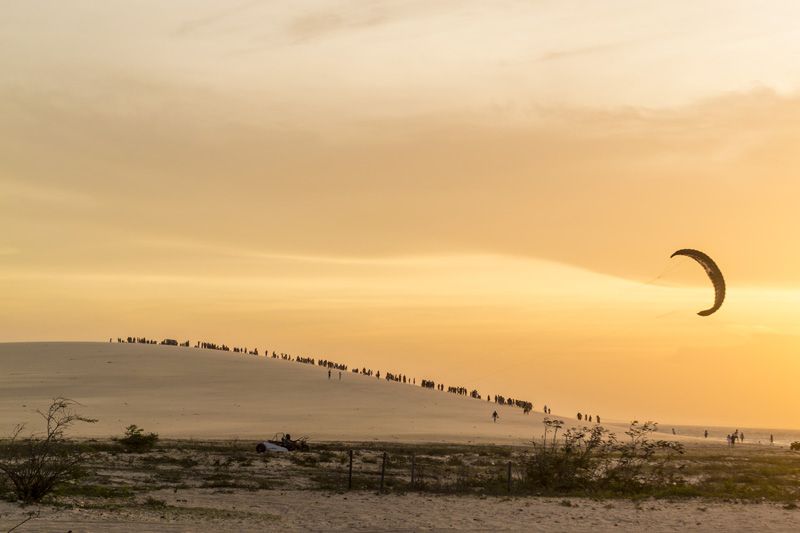 Durante a temporada dos ventos, de meados de julho a janeiro, velejadores do mundo inteiro invadem a costa do Nordeste voltada para o norte, entre São Miguel do Gostoso, no Rio Grande do Norte, e Atins, no Maranhão. Jeri é onde o esporte ganha o complemento da festa. Para muitos kitesurfistas, é o desfecho de uma longa jornada downwind em que velajam pela costa cearense do Cumbuco, perto de Fortaleza, a Jericoacoara.